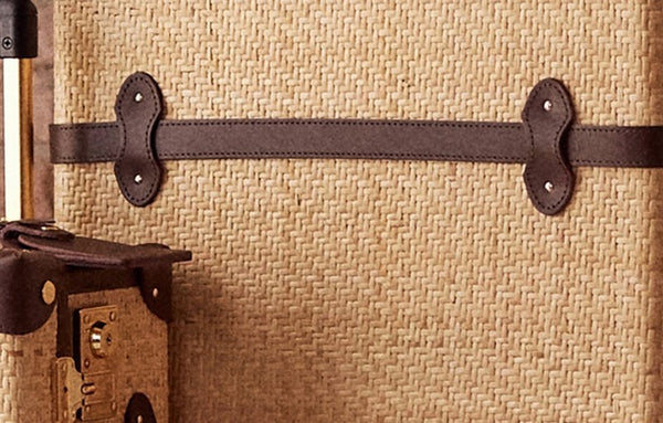 A trailblazer in travel. Our eco-responsible Explorer Check-In Spinner in natural rattan with buckle straps is a stunning study in retro chic.